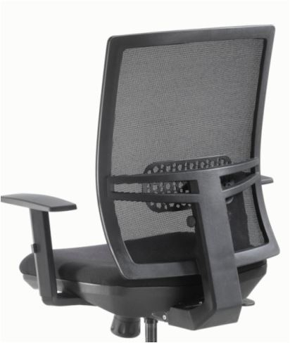 opěrák - pevný (výška opěráku 56 cm), potažený černou síťovinou, integrovaná stavitelná bederní opěrka