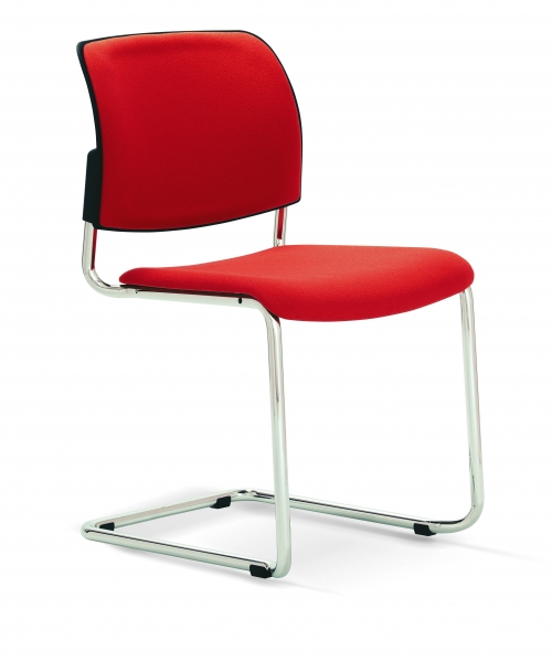 Jednací židle čalouněná s pevným kovovým trubkovým rámem.