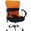 Kancelářské výškově nastavitelné křeslo s područkami, materiál pružná látka. Doplňky z chromu. Opěrka zad s bederní podložkou, chromový kříž s kolečky, plynový píst, houpací mechanismus