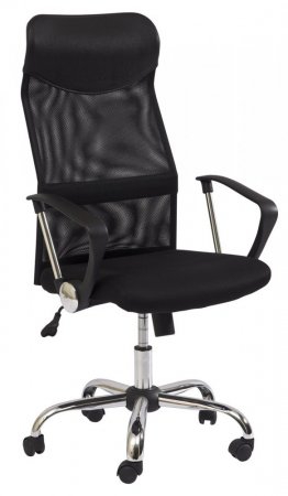 Pohodlná kancelářská židle s prodyšným opěrákem a čalouněným sedákem.